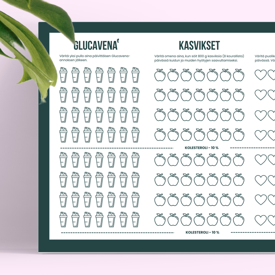 Glucavena seurantataulukko on kätevä pohja Glucavenan käyttämiseen sekä elintapamuutoksien seurantaan.